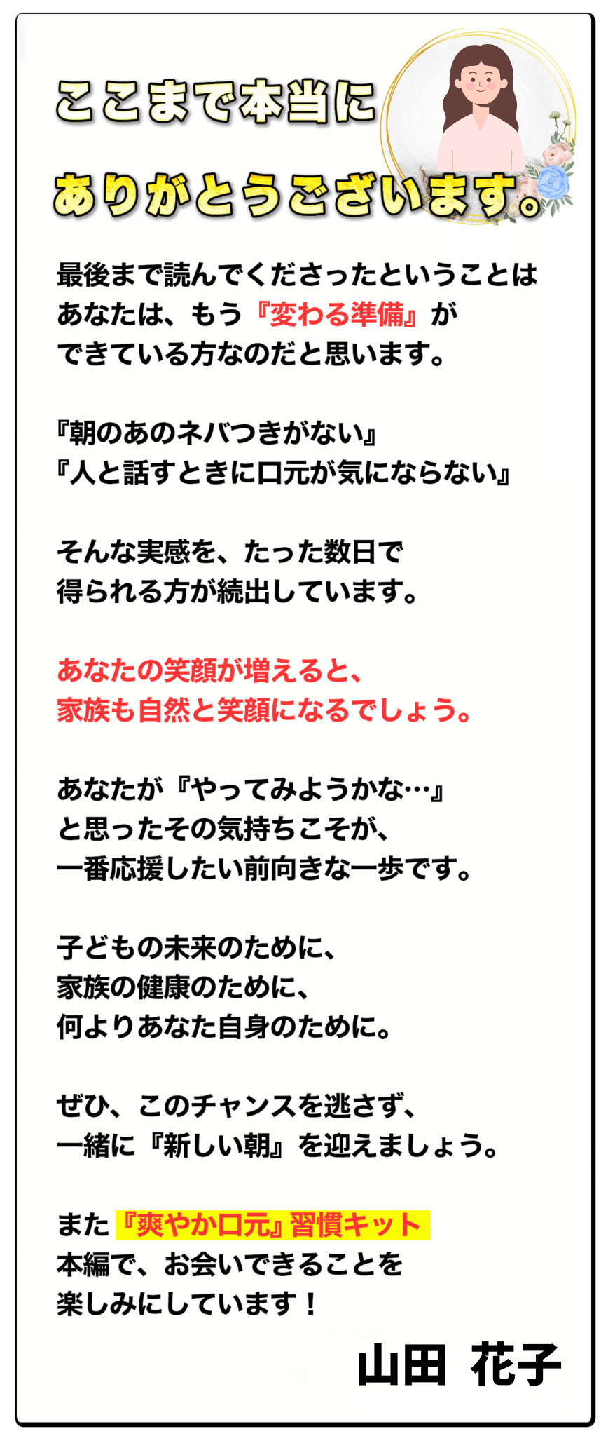 『口内環境を整える習慣』を得ることで、自信を持てるようになったという声が多いです。